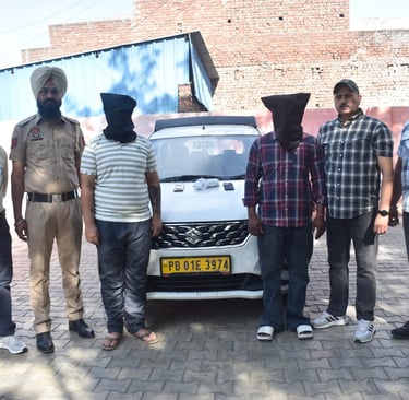 *ਕਮਿਸ਼ਨਰੇਟ ਪੁਲਿਸ ਜਲੰਧਰ ਨੇ ਕਾਰ ਖੋਹਣ ਵਾਲਿਆਂ 'ਤੇ ਕੀਤੀ ਕਾਰਵਾਈ, ਦੋਸ਼ੀਆਂ ਨੂੰ ਕੀਤਾ ਕਾਬੂ* ➣ਜਲੰਧਰ ਪੁਲਿਸ ਨੇ ਸ਼ਹਿਰ ਵਿੱਚੋਂ ਅਪਰਾਧ ਨੂੰ ਜੜ੍ਹੋਂ ਪੁੱਟਣ ਦਾ ਵਾਅਦਾ ਕੀਤਾ। ➣ਪੁਲਿਸ ਨੇ ਦੋਸ਼ੀਆਂ ਤੋਂ ਇੱਕ ਕਾਰ, ਖਿਡੌਣਾ ਪਿਸਤੌਲ ਅਤੇ ਮੋਬਾਈਲ ਫੋਨ ਬਰਾਮਦ ਕੀਤਾ