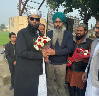 ਪੰਜਾਬ ਦੇ ਸ਼ਾਹੀ ਇਮਾਮ ਡਾਕਟਰ ਅਬਦੁੱਲਾ ਜੀ ਦਾ ਪਿੰਡ ਭਾਮ ਵਿੱਚ ਨਿੱਘਾ ਸਵਾਗਤ ਸਰਪੰਚ ਹਰਭੇਜ ਸਿੰਘ ਰਿਆੜ ਨੇ ਗੁਲਦਸਤਾ ਭੇਟ ਕਰਦਿਆ ਉਹਨਾ ਦੀ ਆਓ ਭਗਤ ਕੀਤੀ